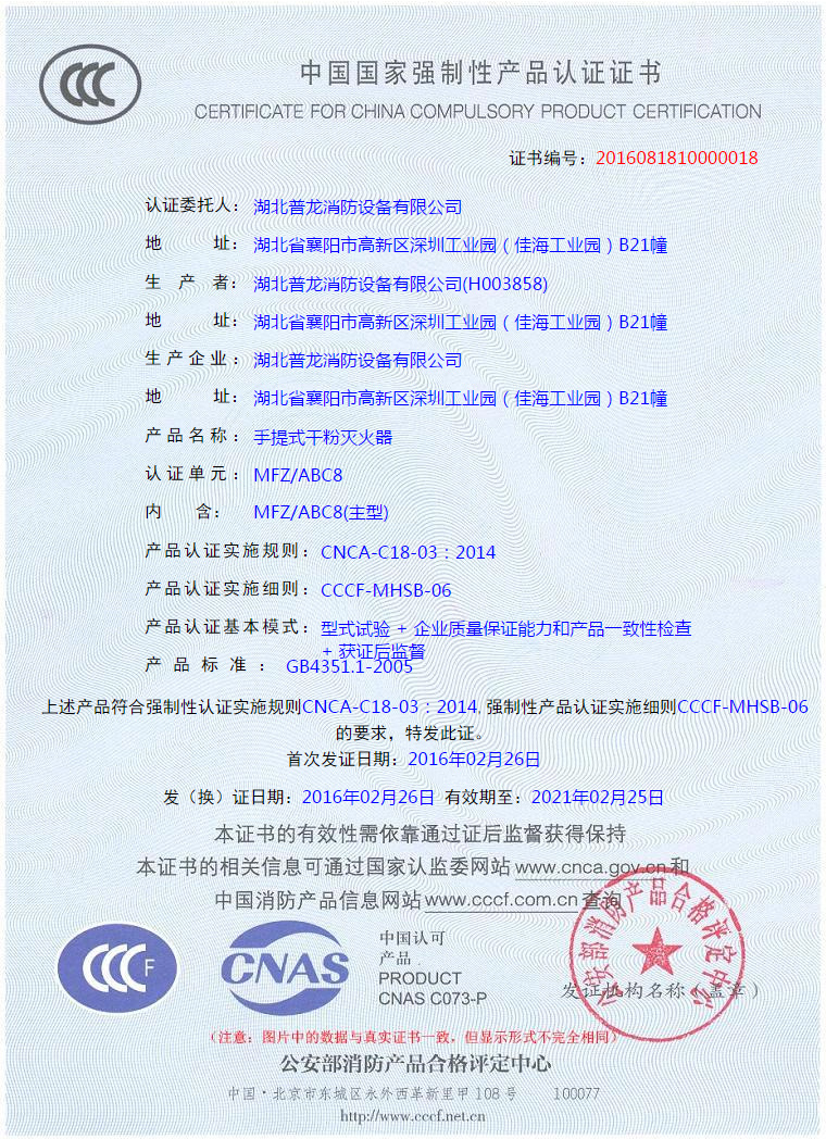 滅火功能:可用于撲滅:A類火(普通的固體材料火)。B類火(可燃液體火)。C類火(氣體和蒸氣火)。E類火(帶電物質(zhì)火)。