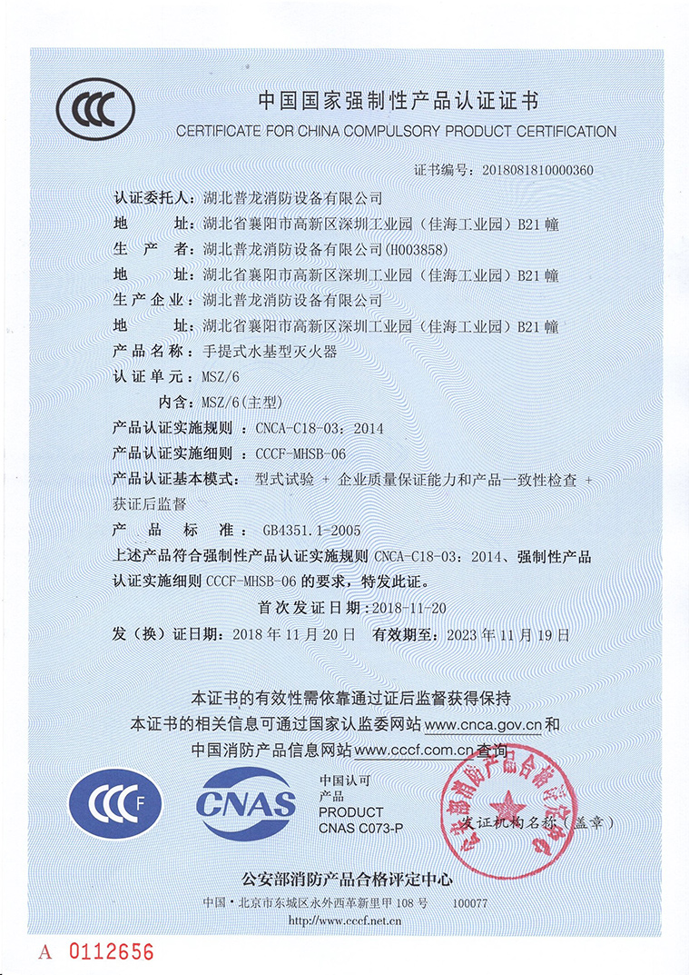 "普龍"牌 手提式水基型滅火器(6L)MSZ/6